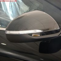 The side profile reveals a large airy cabin with an almost coupe – ish roof which flows smoothly into the well integrated bootlid; along with large wheel arches which house big gun metal finish 16 inch, double spoke alloy wheels and chrome touches for the door handles and window lining.