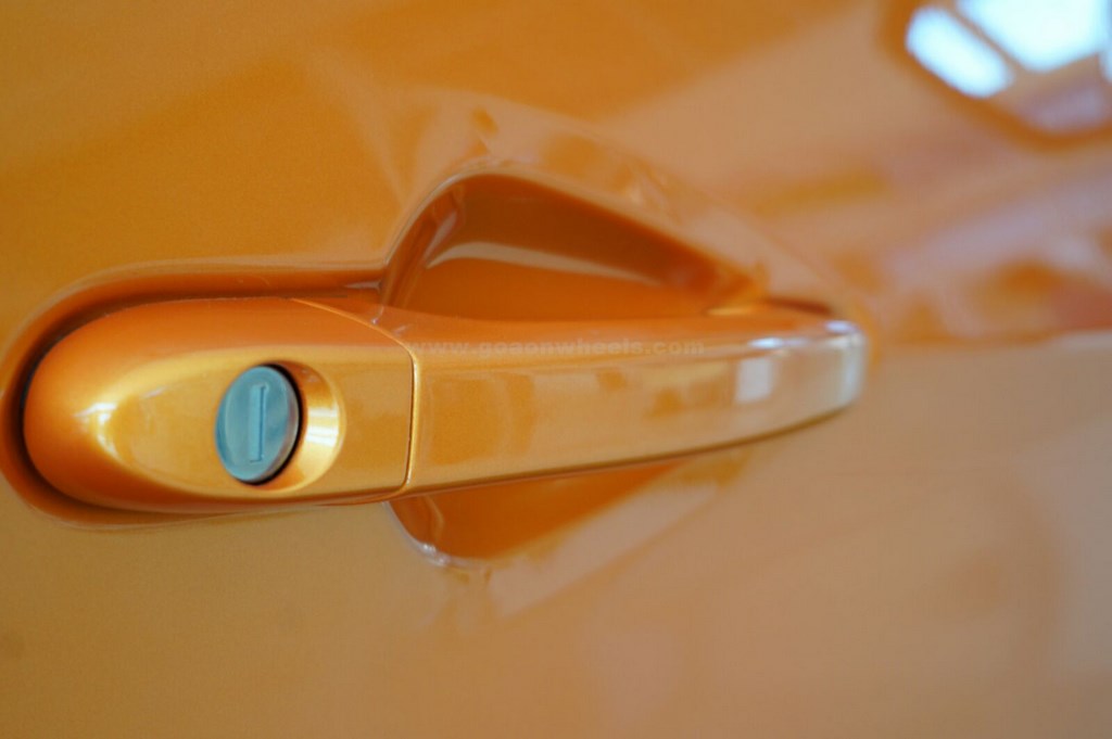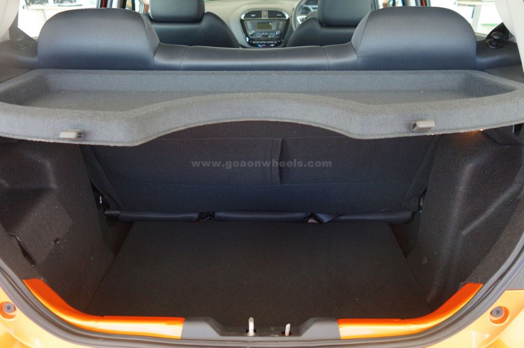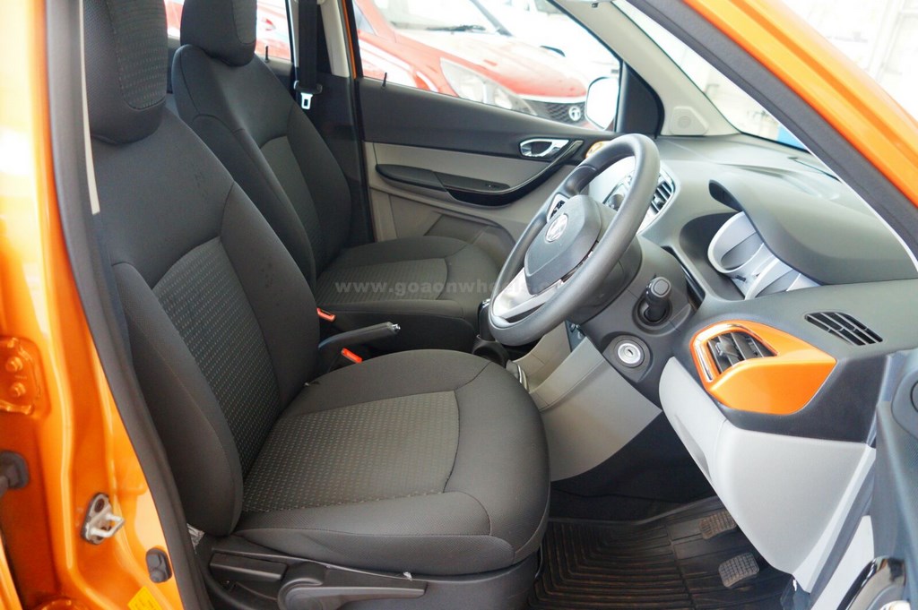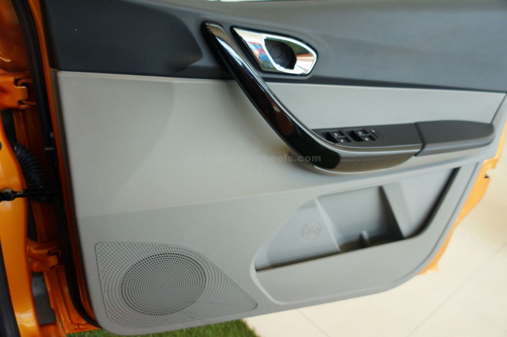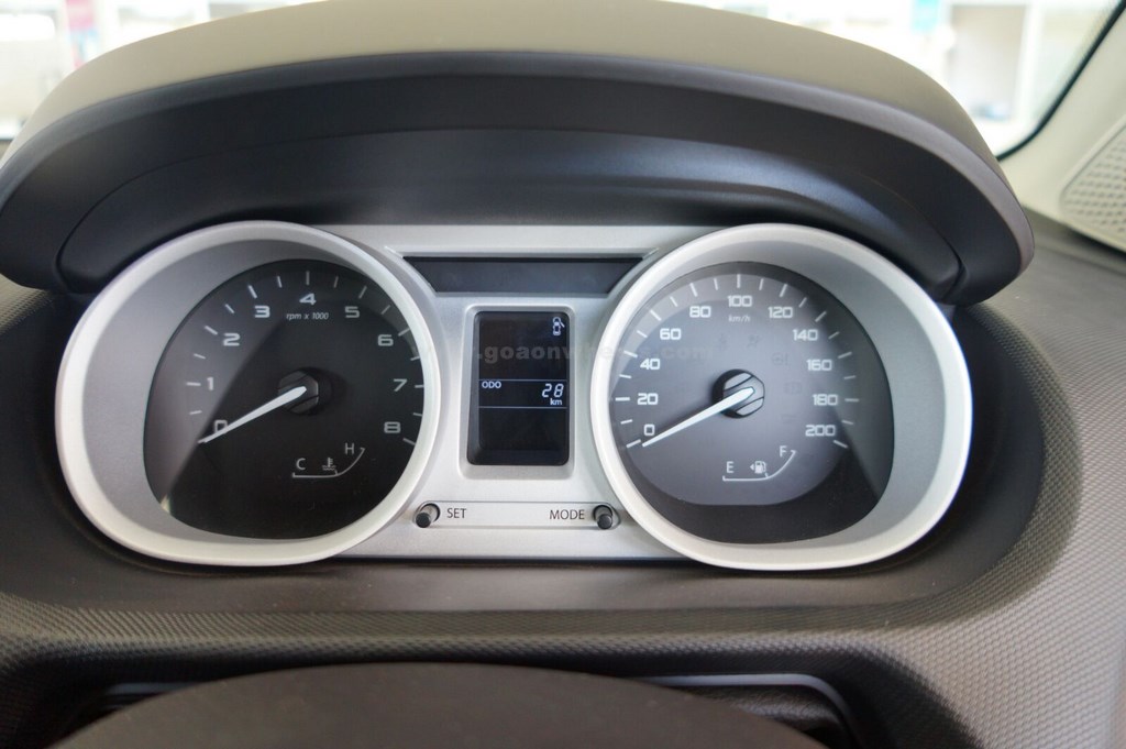The centre console gets a piano black finish and houses the 2 din audio system and silver ringed A/C vents. The side A/C vents can be customized and be had in contrasting colours on the Orange or Red exterior paint shades, while the rest get a piano black finish. The silver instrument cluster looks old and tacky in the modern looking interior.