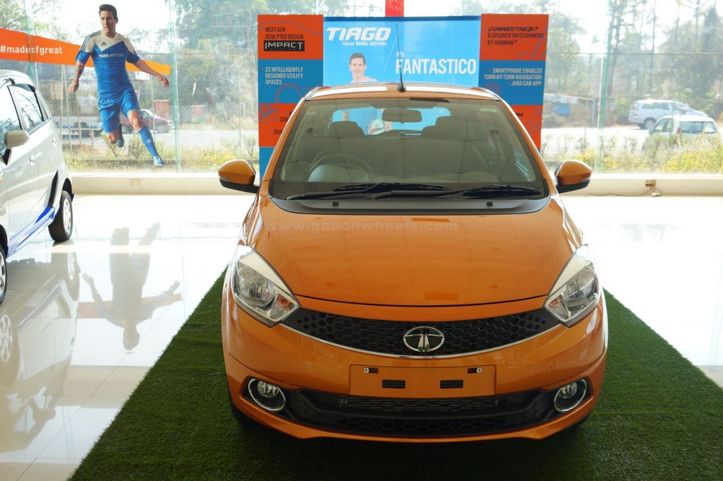 Tata Motors is all set to launch the Tiago hatchback in India on the 28th of March; and the car has already made it to showrooms for display.