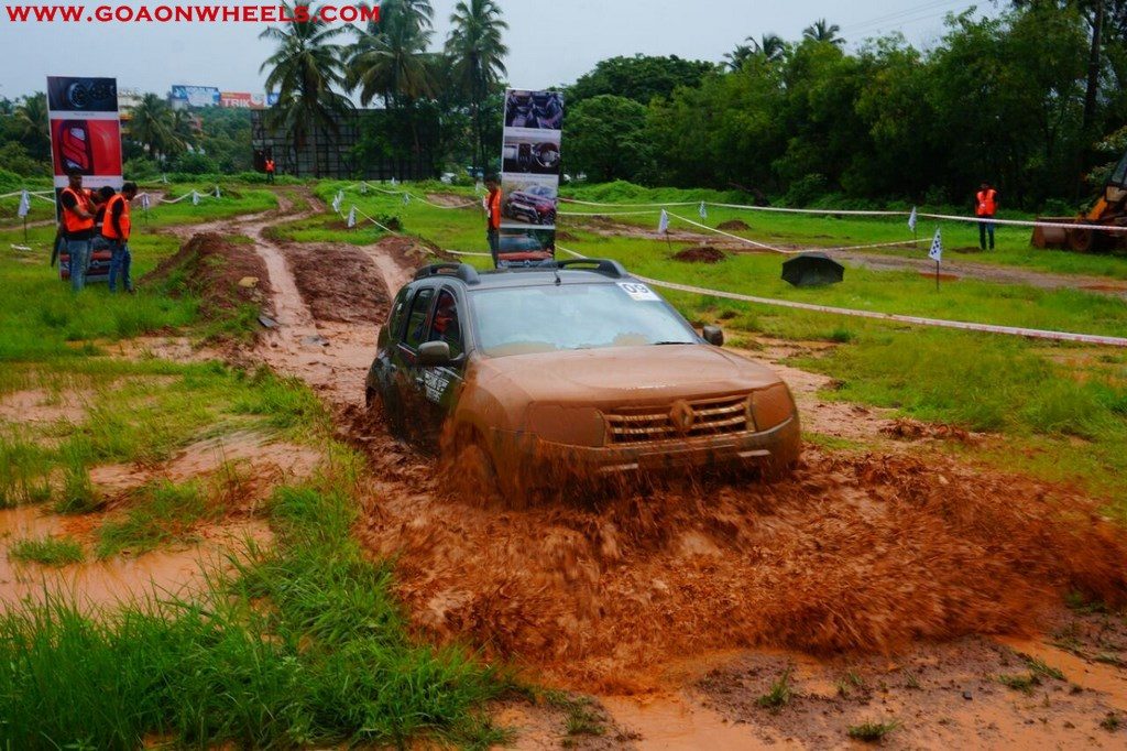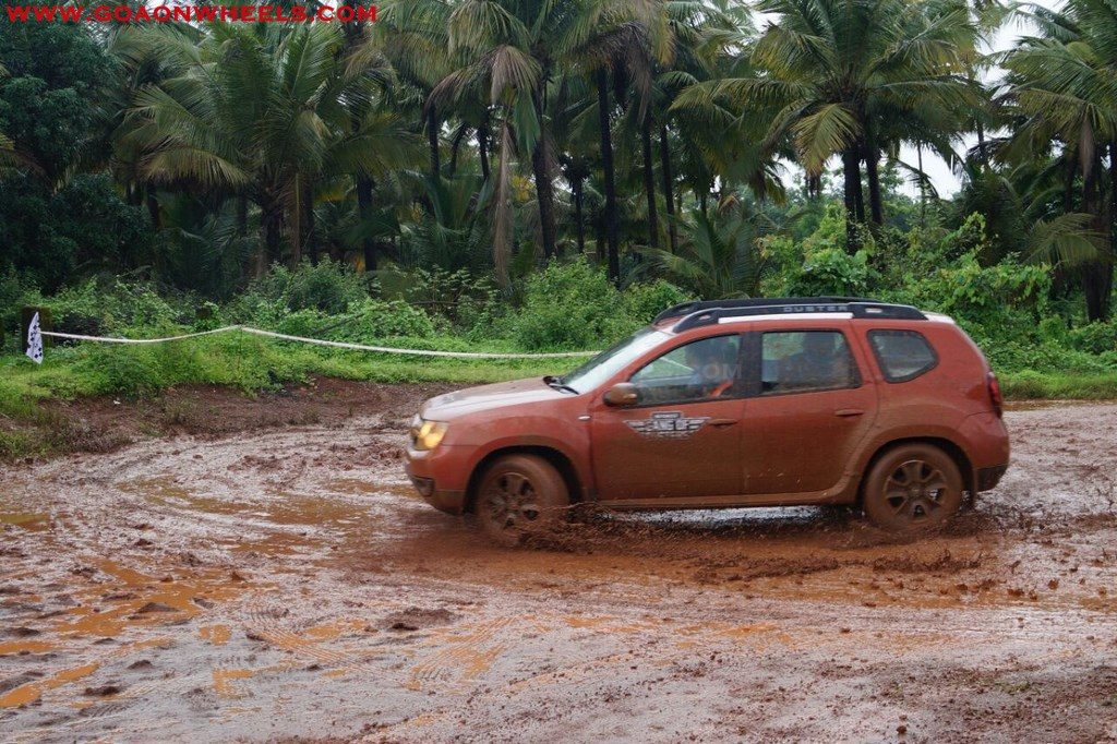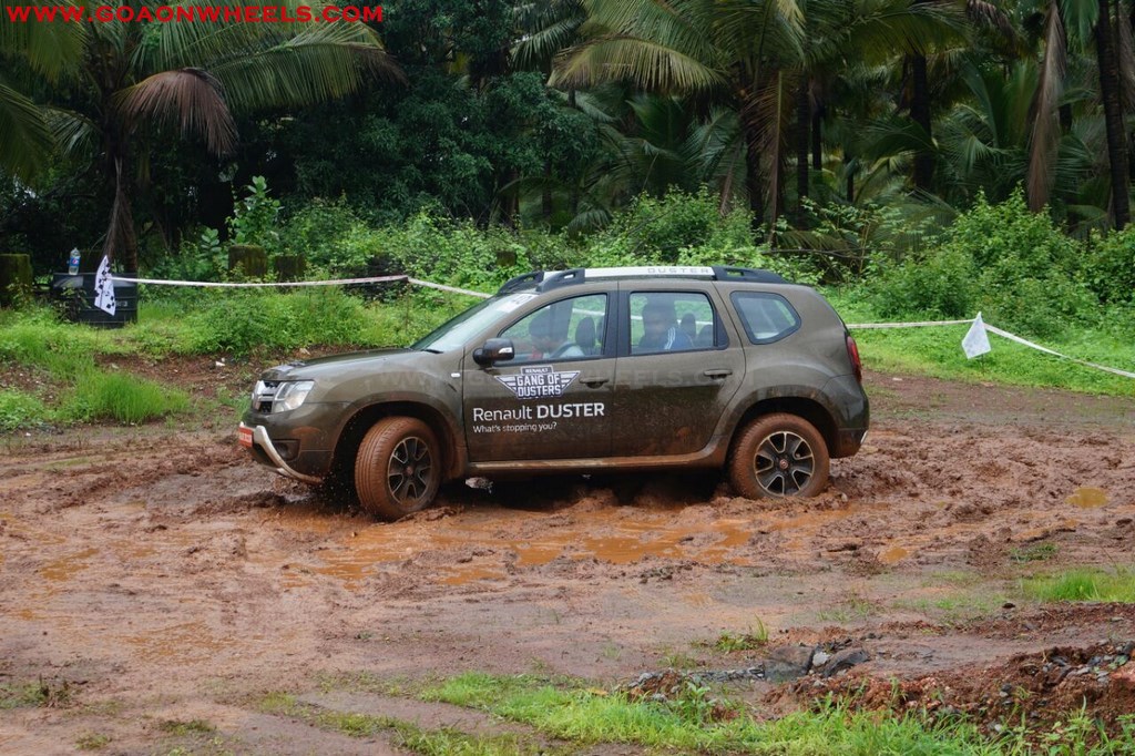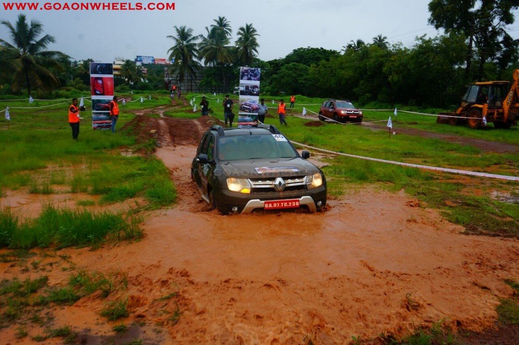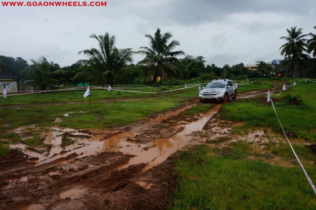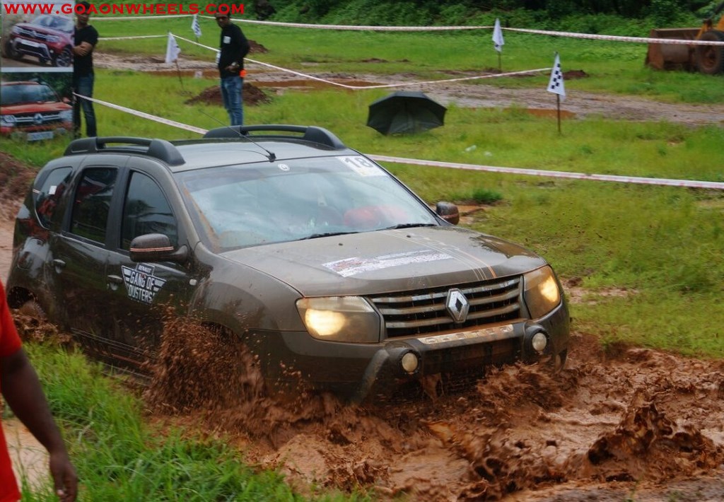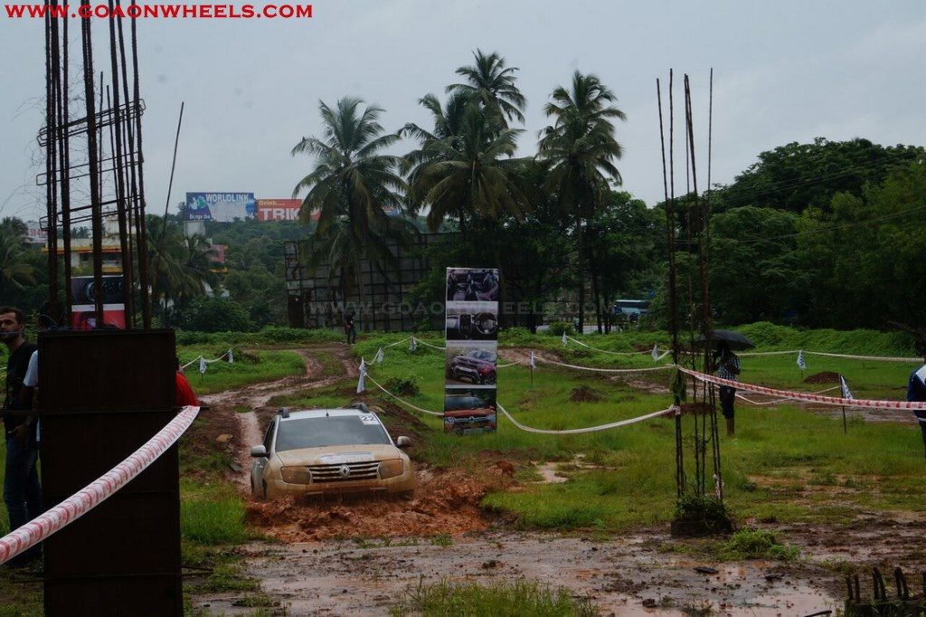 Enthusiasts drove their Dusters through obstacles like drive on wet grass and through muddy fields, craters, deep water negotiation and slush.