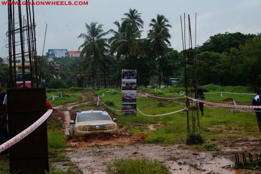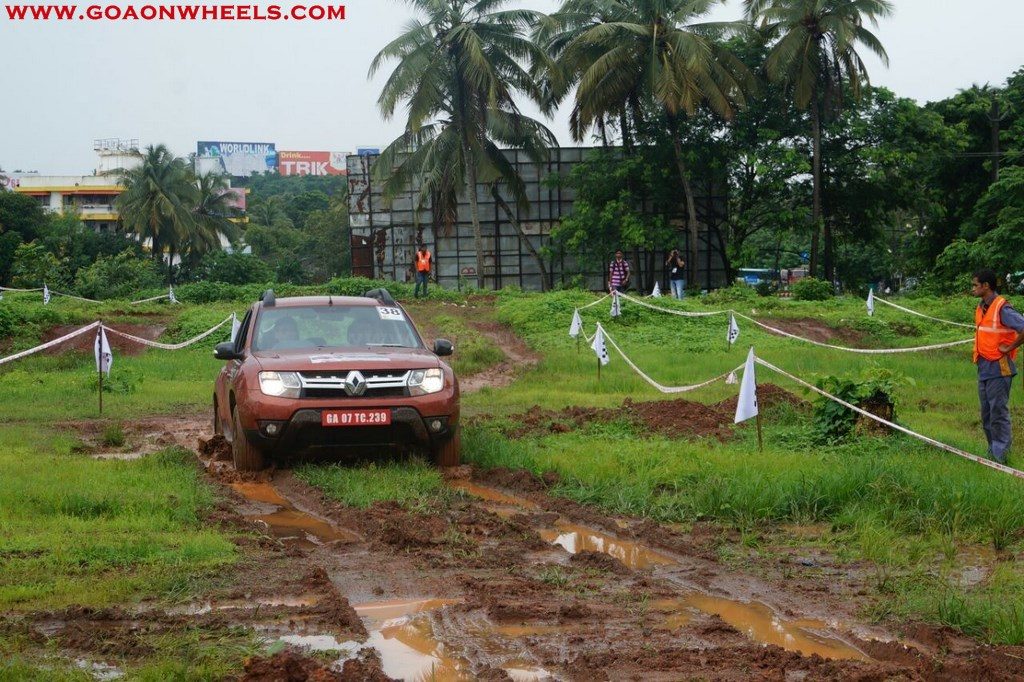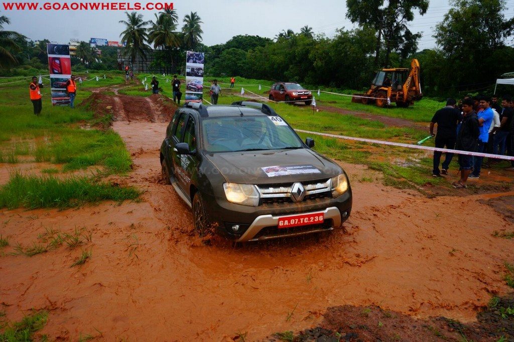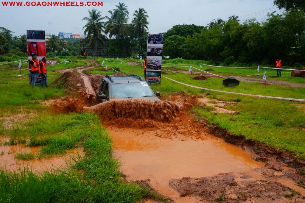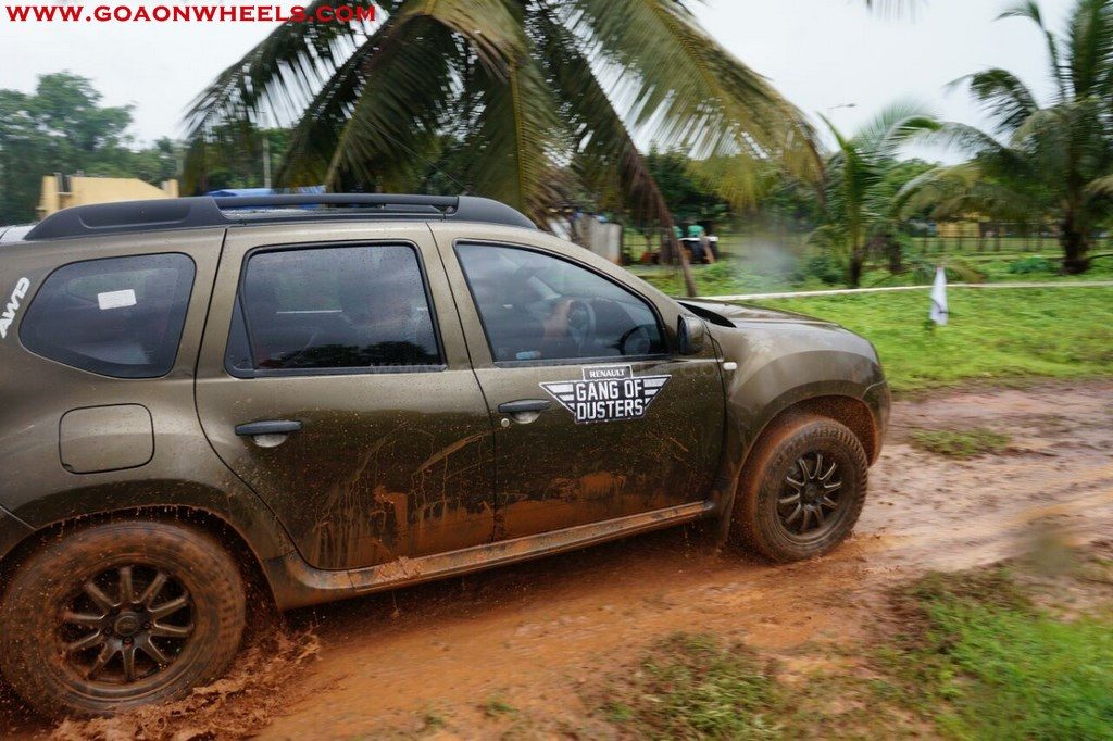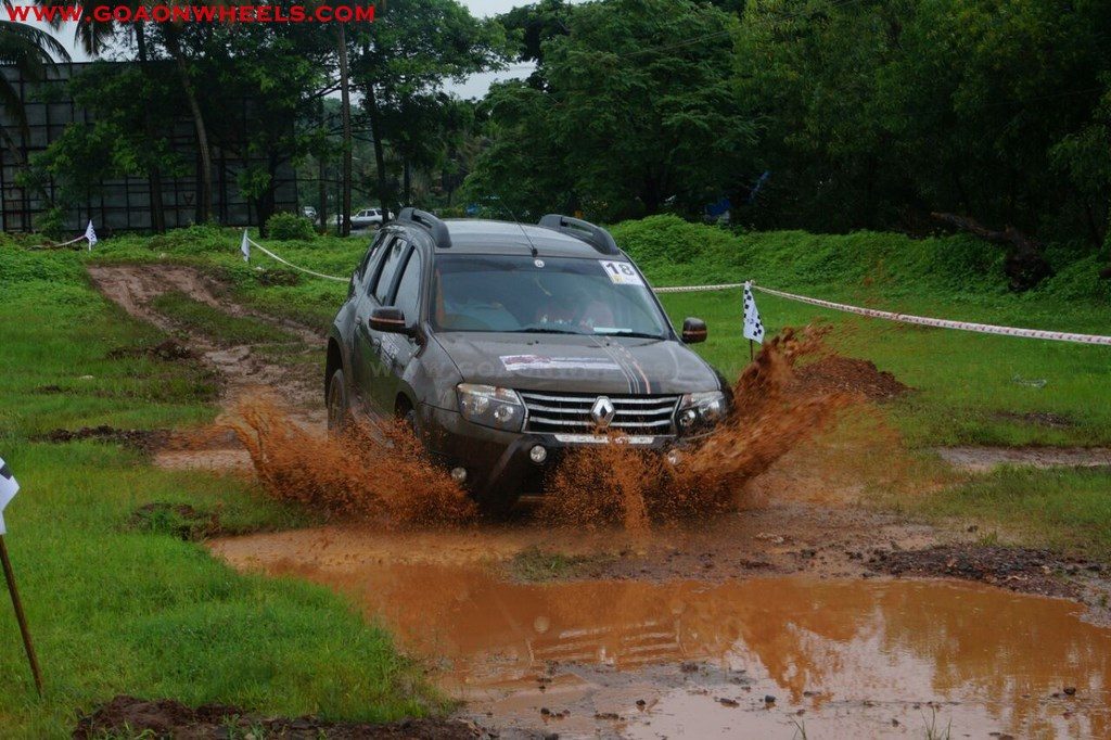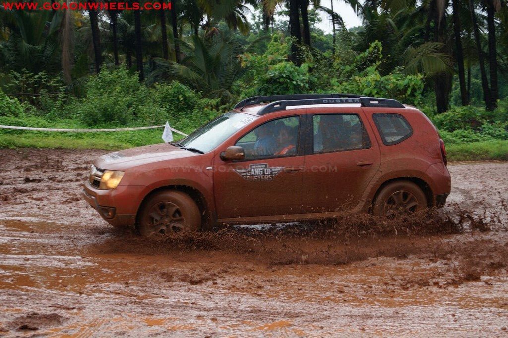 Enthusiasts drove their Dusters through obstacles like drive on wet grass and through muddy fields, craters, deep water negotiation and slush.