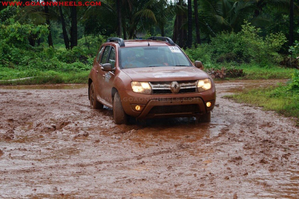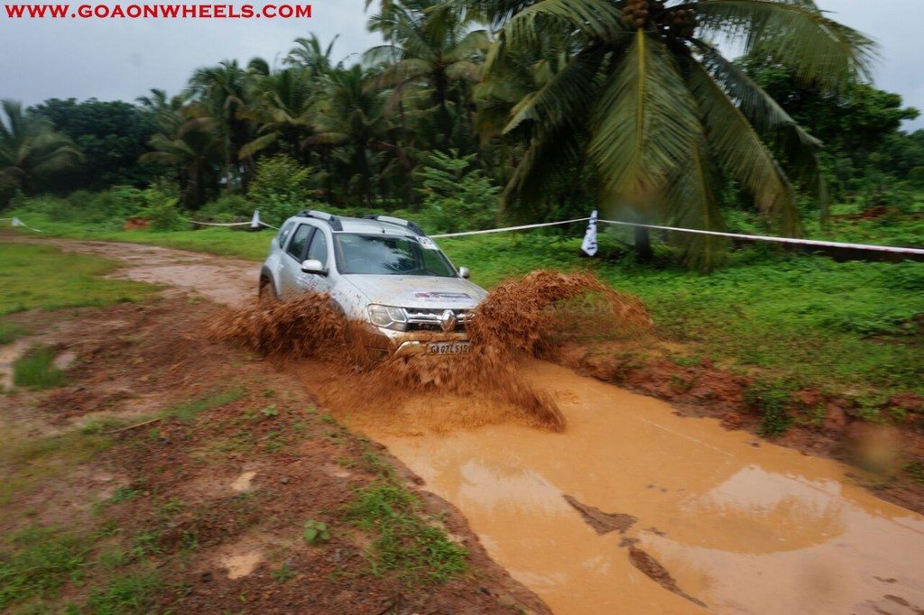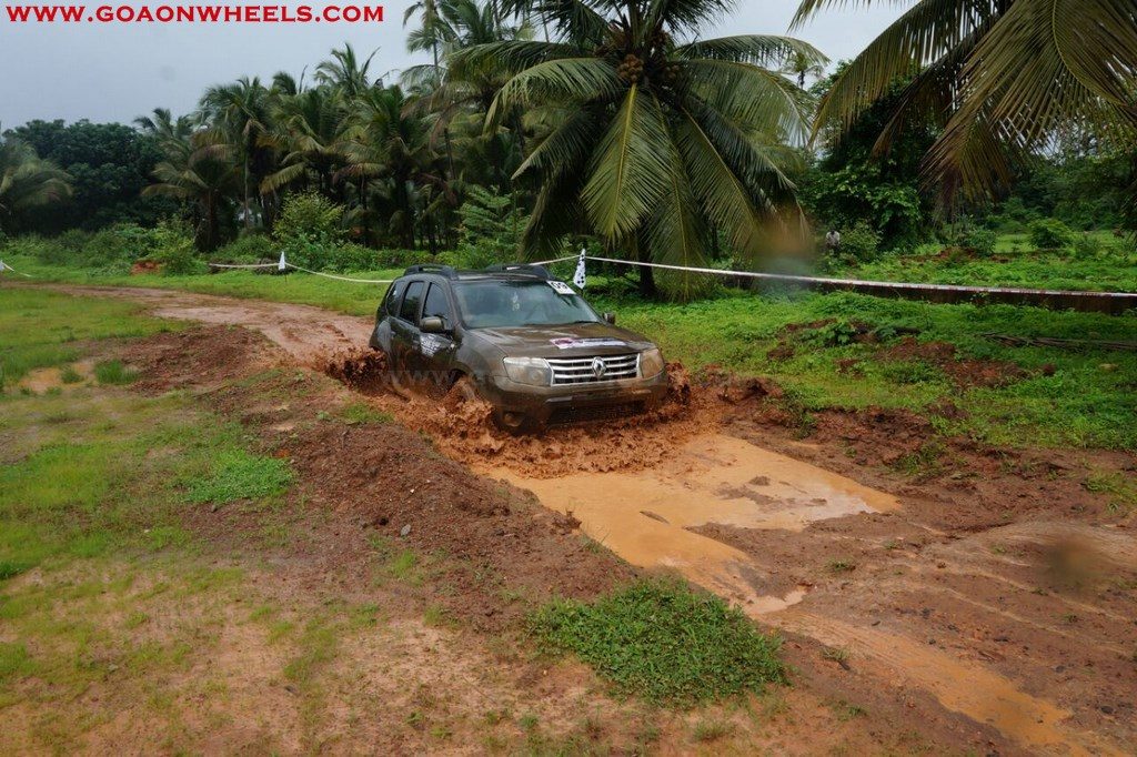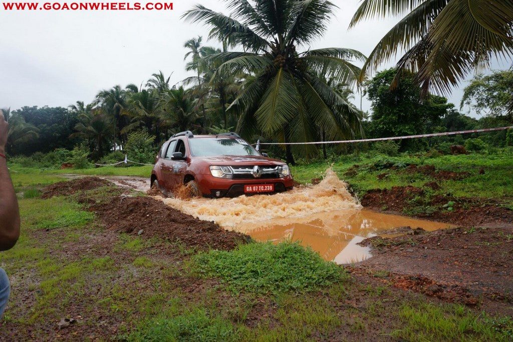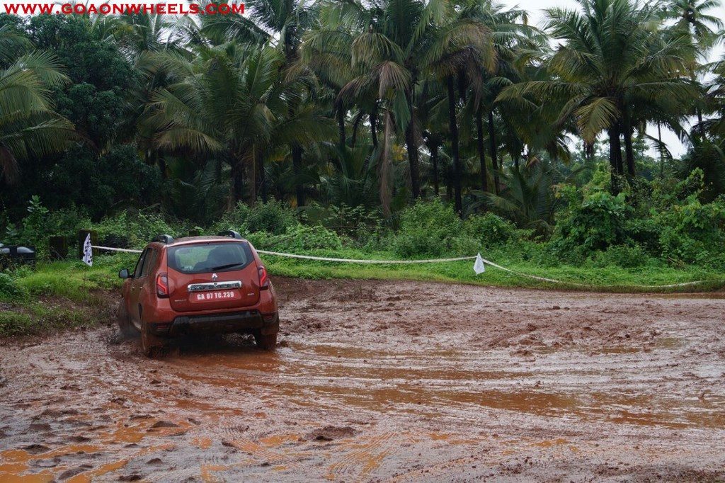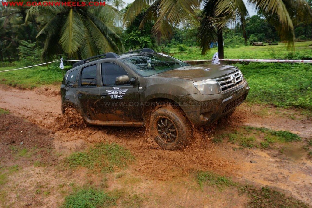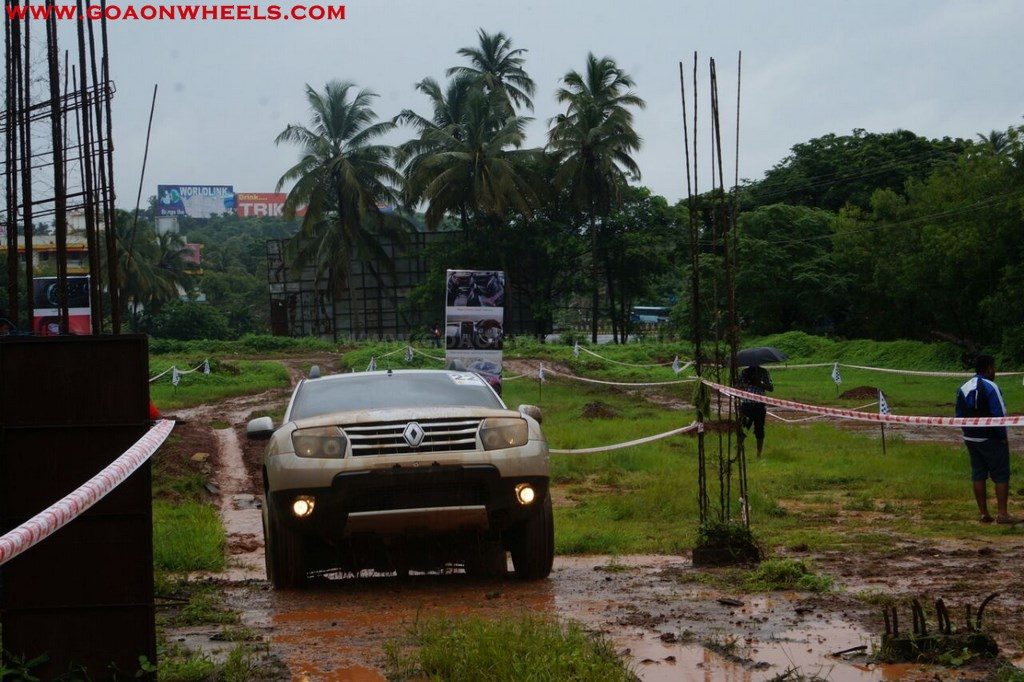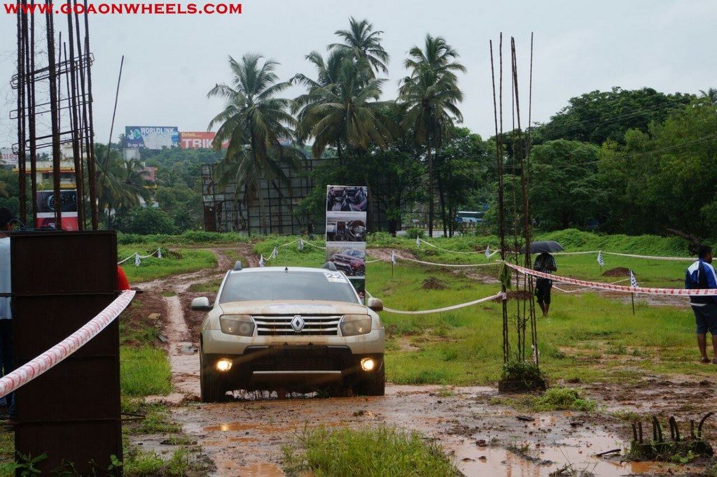 Enthusiasts drove their Dusters through obstacles like drive on wet grass and through muddy fields, craters, deep water negotiation and slush.
