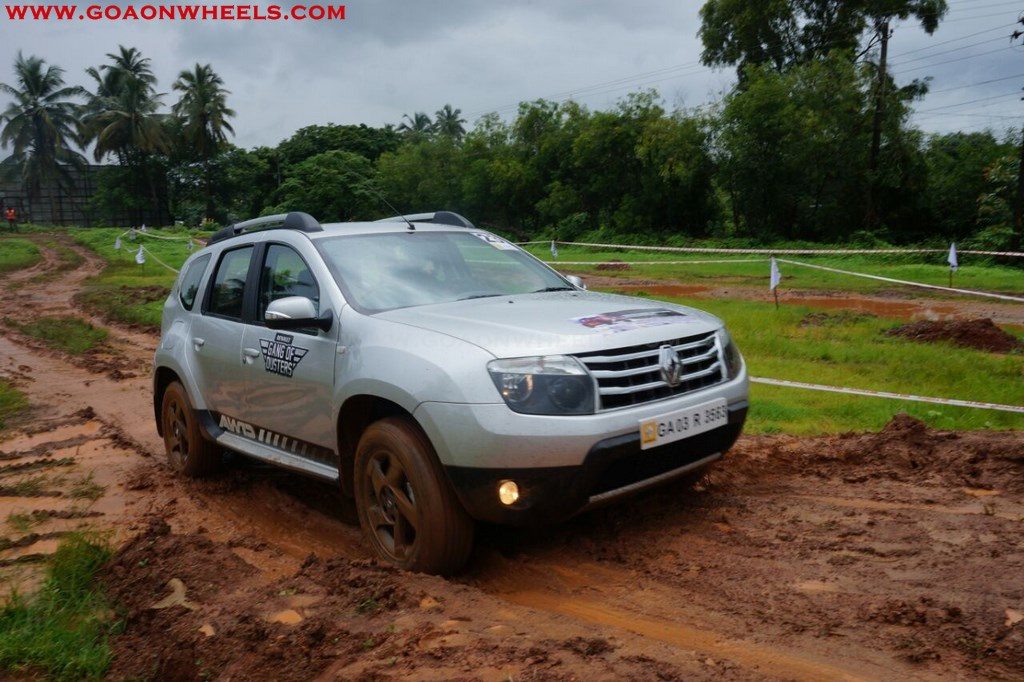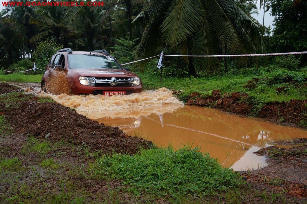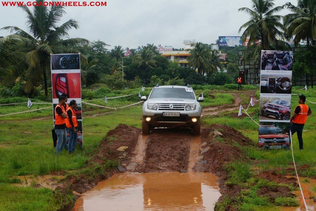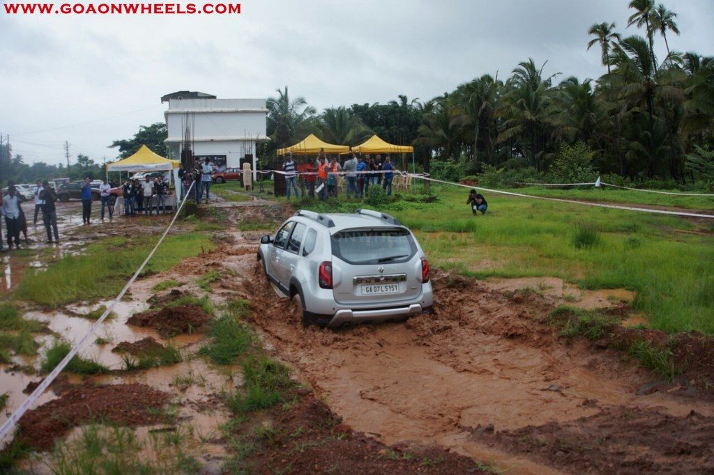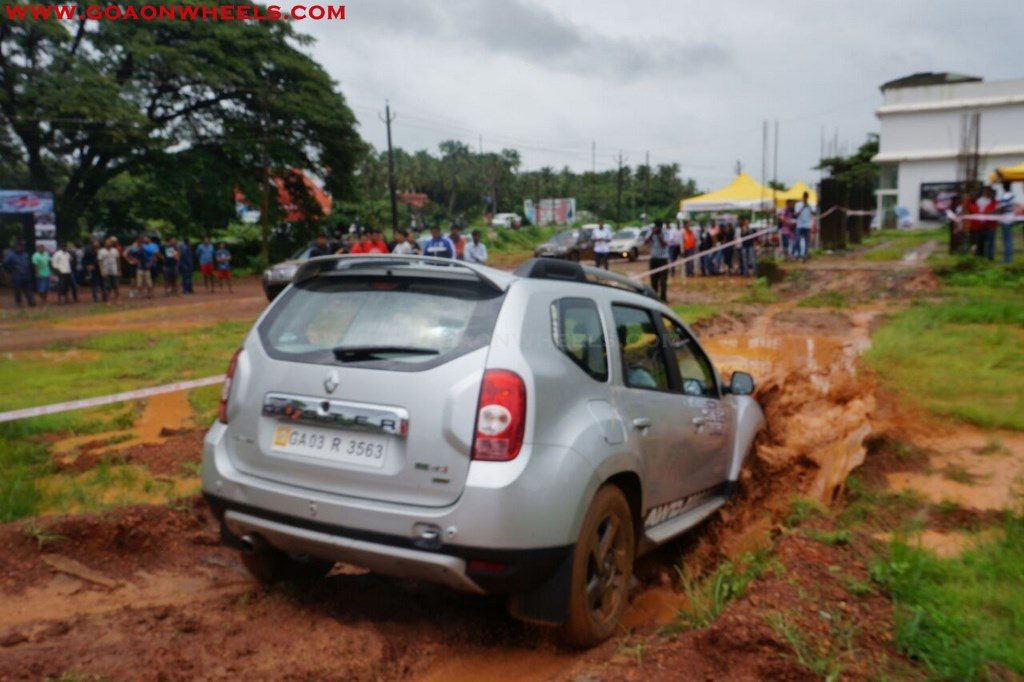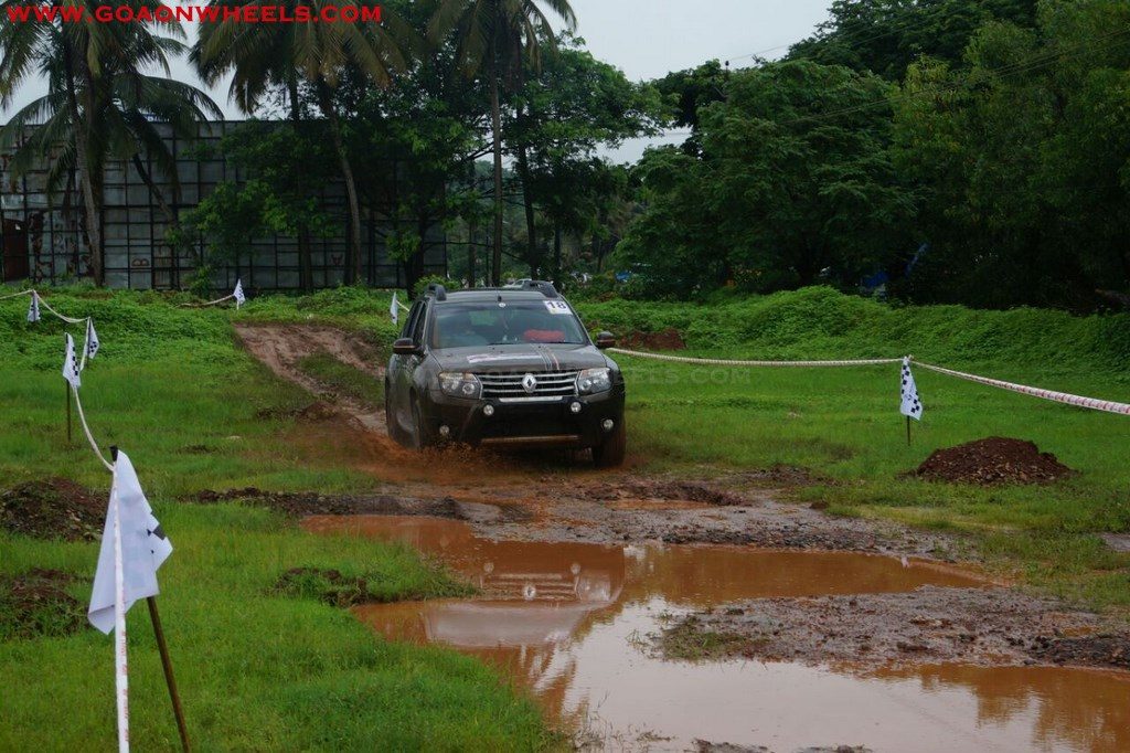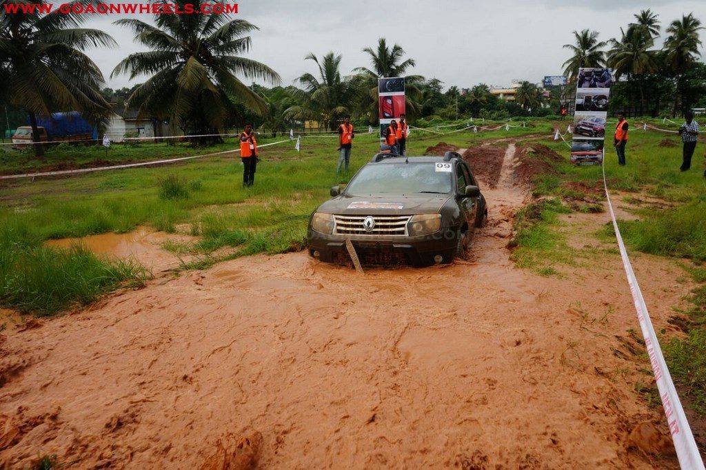 Enthusiasts drove their Dusters through obstacles like drive on wet grass and through muddy fields, craters, deep water negotiation and slush.