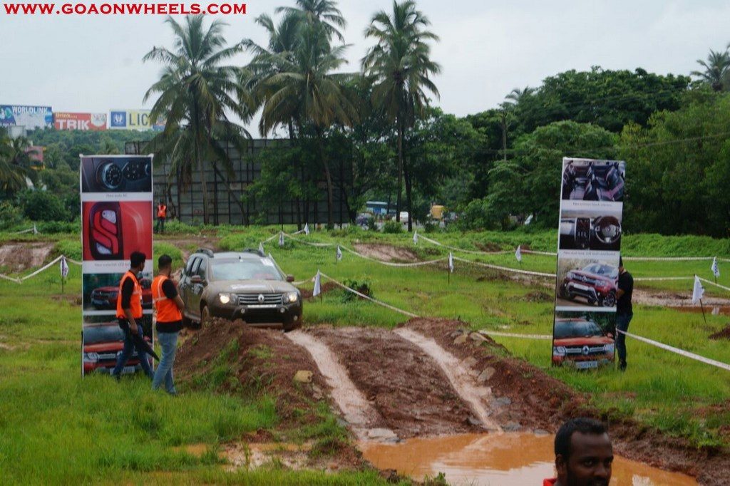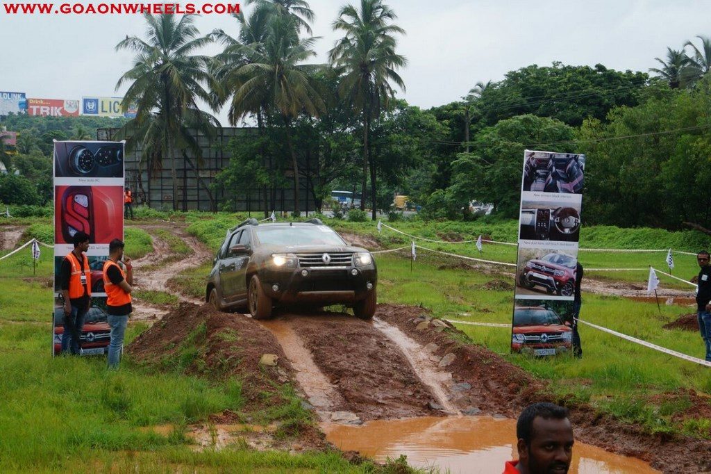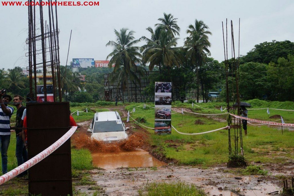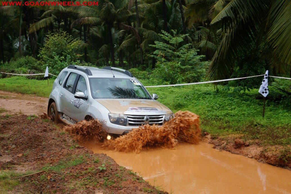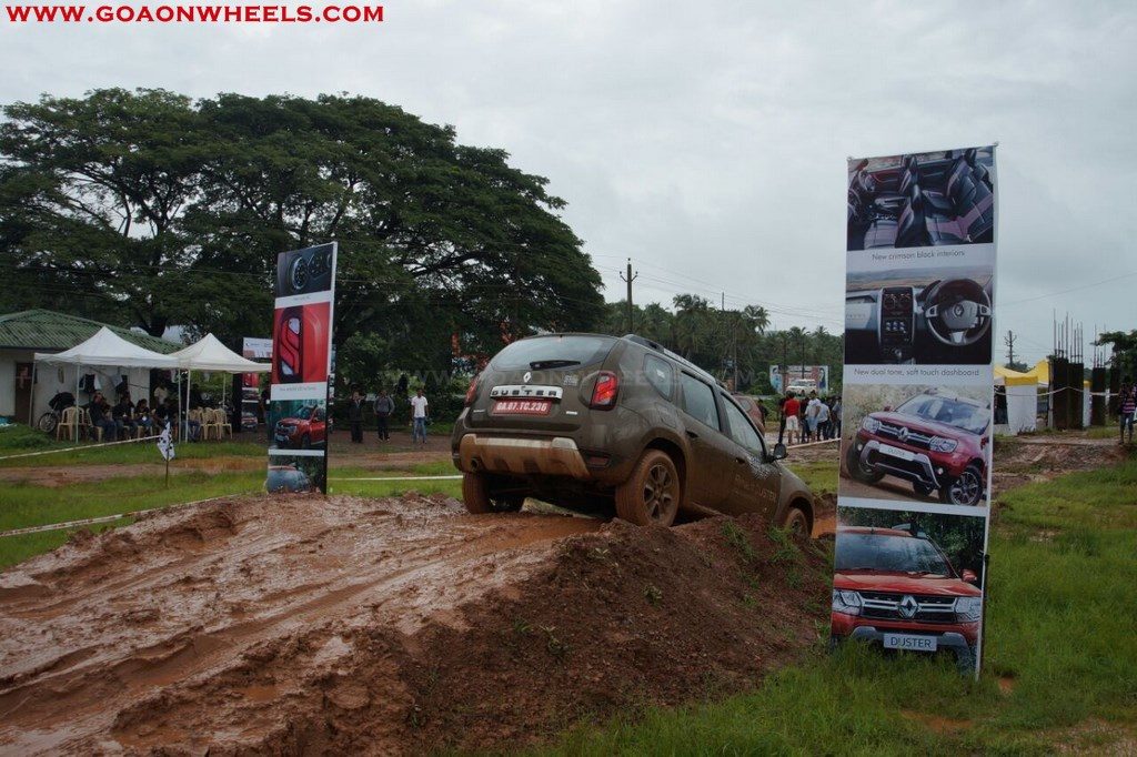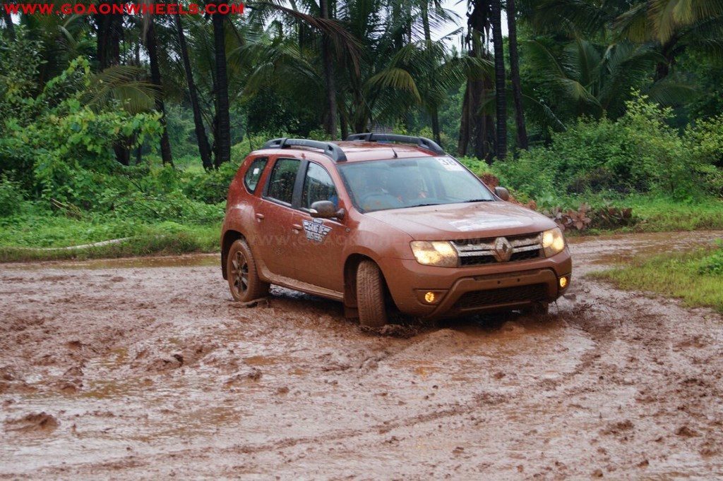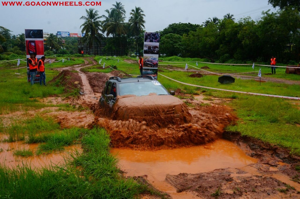 Enthusiasts drove their Dusters through obstacles like drive on wet grass and through muddy fields, craters, deep water negotiation and slush.