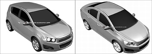 The official design patent drawings of the all-new 2012 Chevrolet Aveo four-door sedan and five-door hatchback models, filed by General Motors are leaked, and thanks to Carscoop for sharing them.