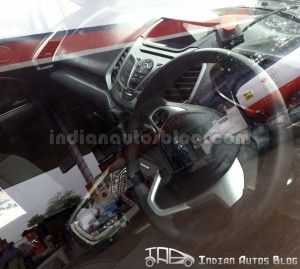 Other interesting detail revealed by the spy pics is that the interiors will be similar to the Fiesta. The dashboard could be mistaken to be the one on the fiesta. The interiors fabrics and trims which include silver finished central console and air vents follow the same theme and the Steering wheel is directly lifted from the fiesta. The good news is that the feature list could also be shared that means the EcoSport will get features such as In-vehicle communication and entertainment system with voice command and Bluetooth connectivity, Cruise control etc.