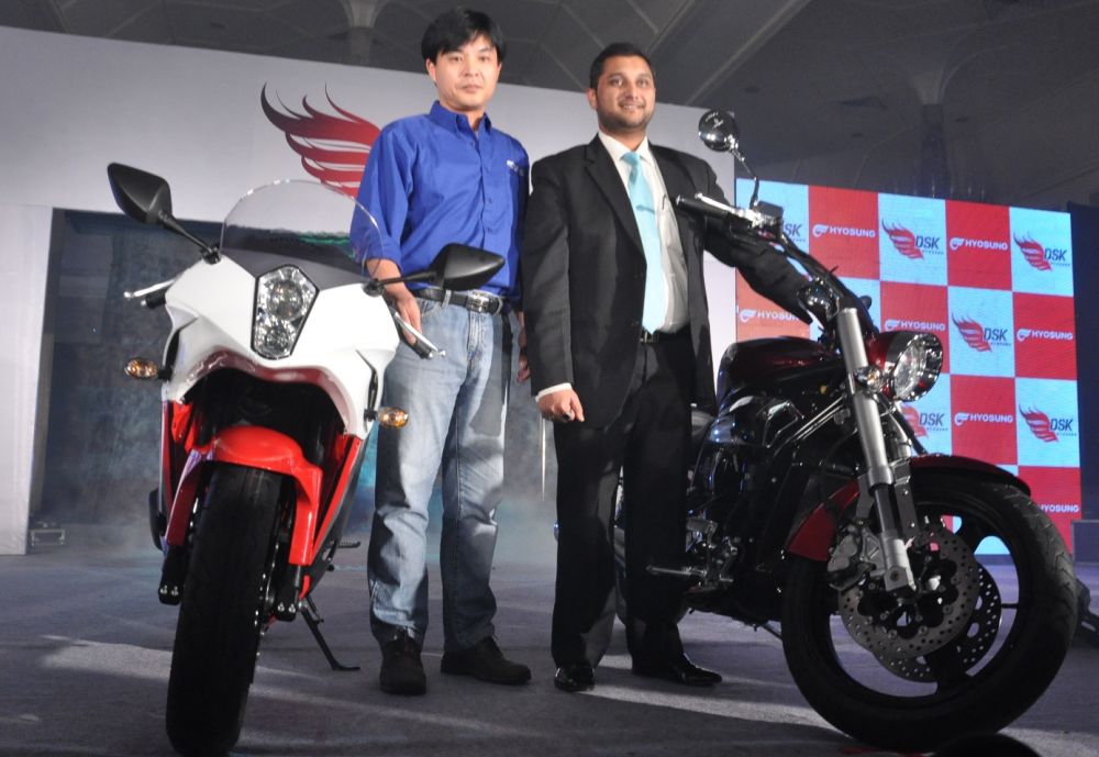 Mr. Jimmy Park Managing Director S&T Motors with Mr. Shrish Kulkarni Managing Director DSK Motowheels addressing the media during the launch of Aquila Pro and GT 650 R 2013