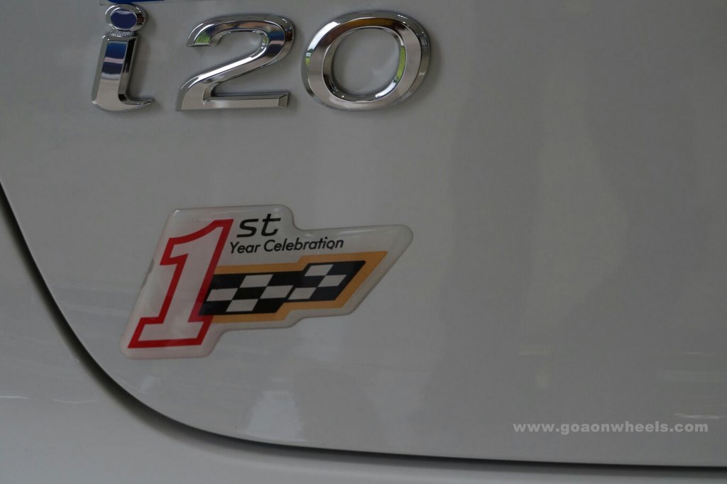 The Celebration Edition is based on the Sportz variant of the Elite i20 and comes with additional features to make it a special edition. The roof and A – pillar get a matte black treatment, while the C–Pillar sports a Premium glossy black treatment. Adding further style is the Sporty side racing decals and a 1st Anniversary badge at the rear of the car. Another addition is the i20 Active sourced Alloy wheels and chrome pedals.