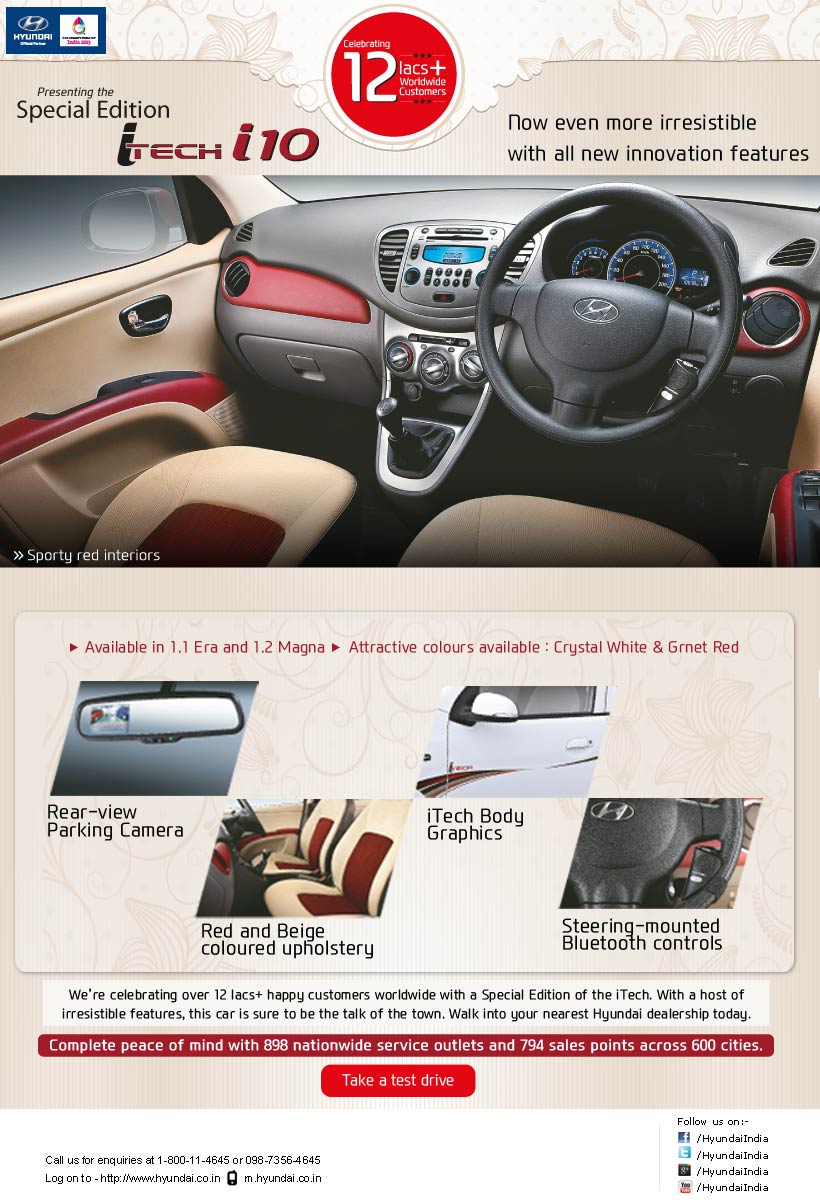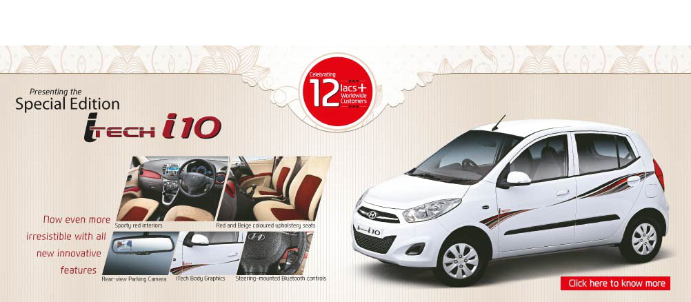 Hyundai India launched a limited edition of i10 to celebrate the event of 12 plus lakh customers worldwide. The limited edition ‘iTech i10′ comes with a number of new features and is available in the 1.1 Era & 1.2 Magna variants.