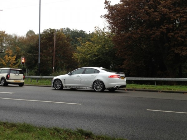 The XFR-S has been caught testing in UK several times. Thanks to our fan Shaun, who caught the XF with minimal camouflage testing on the streets of Coventry close to the JLR plan in UK. The XF caught testing had large 10 spoke alloy wheels and with large dams in front.