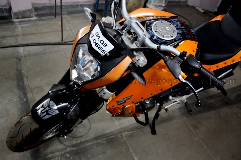 The Duke 200 just got under the brush of Regnex which gave the Duke a new look. This is probably one of the first Duke’s in India to get a custom paint job but still retaining the KTM Orange colour DNA. The Owner wanted to have a different look but also wanted to retain the original KTM colour. As you know that all KTM’s sold come in just one colour.