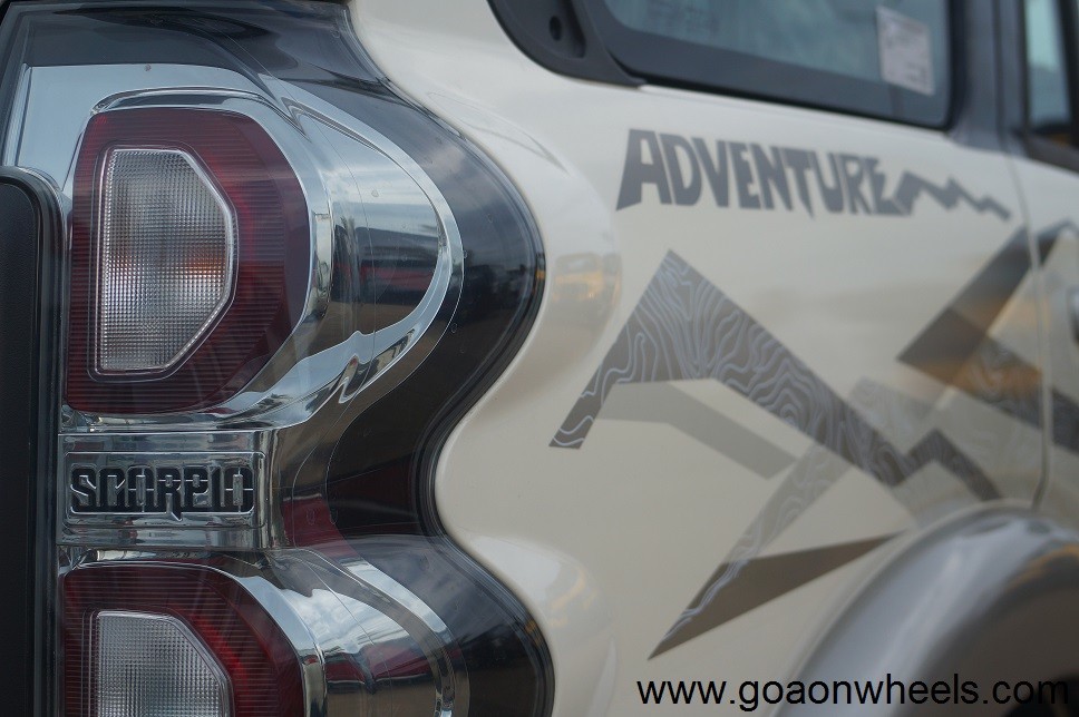 The Scorpio Adventure Edition is based on the top end S10 variant and sports cosmetic changes on the exterior which includes an all new dual tone Mist Silver and White exterior paint shade along with Adventure themed graphics along the sides of the car, smoked out taillamps, turn indicators embedded into the outside rear view mirrors and Gun metal finish alloy wheels with Red brake callipers.