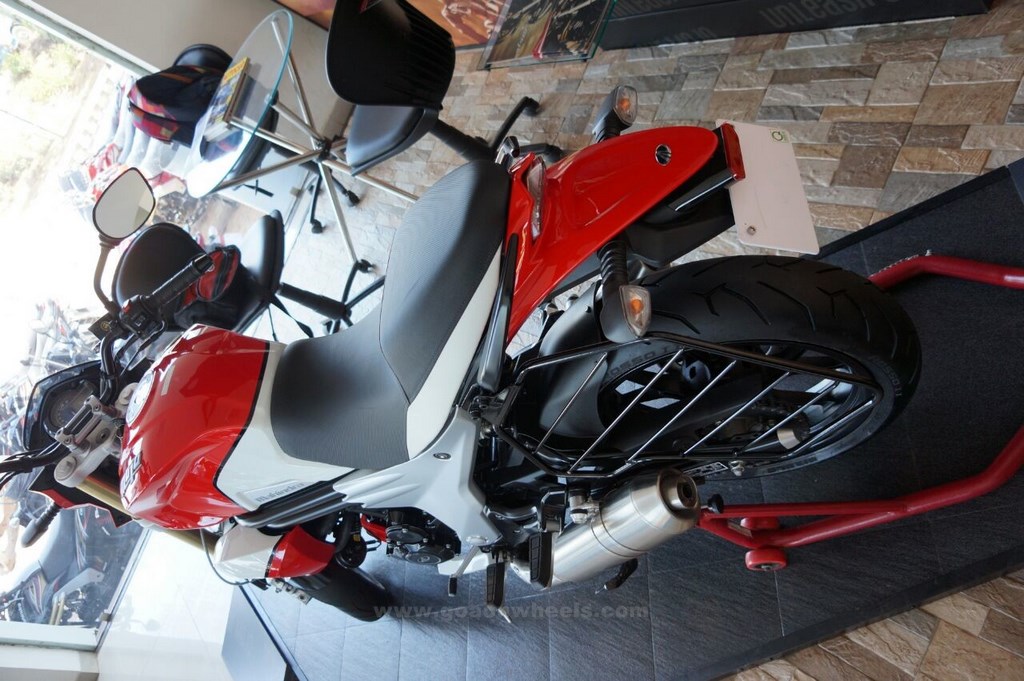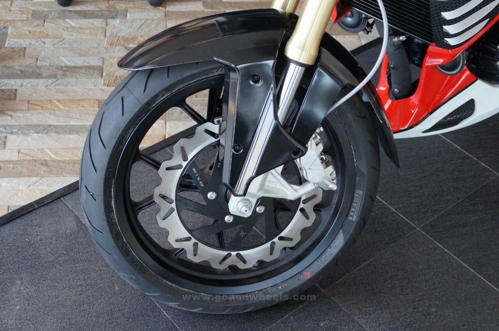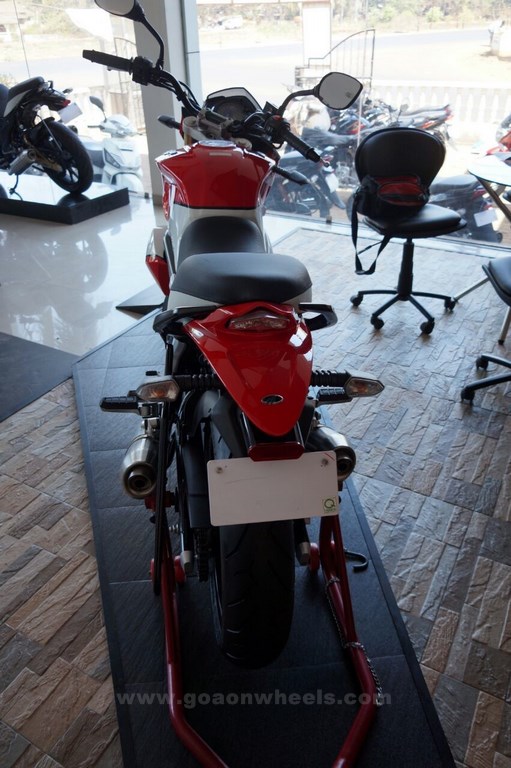 The bike rides on Pirelli Diablo Rosso II tyres 110/70 ZR17 (front) and 150/60 ZR 17 (rear) tyres. The inverted front suspension and coaxial mounting of frame provides unmatched ride quality