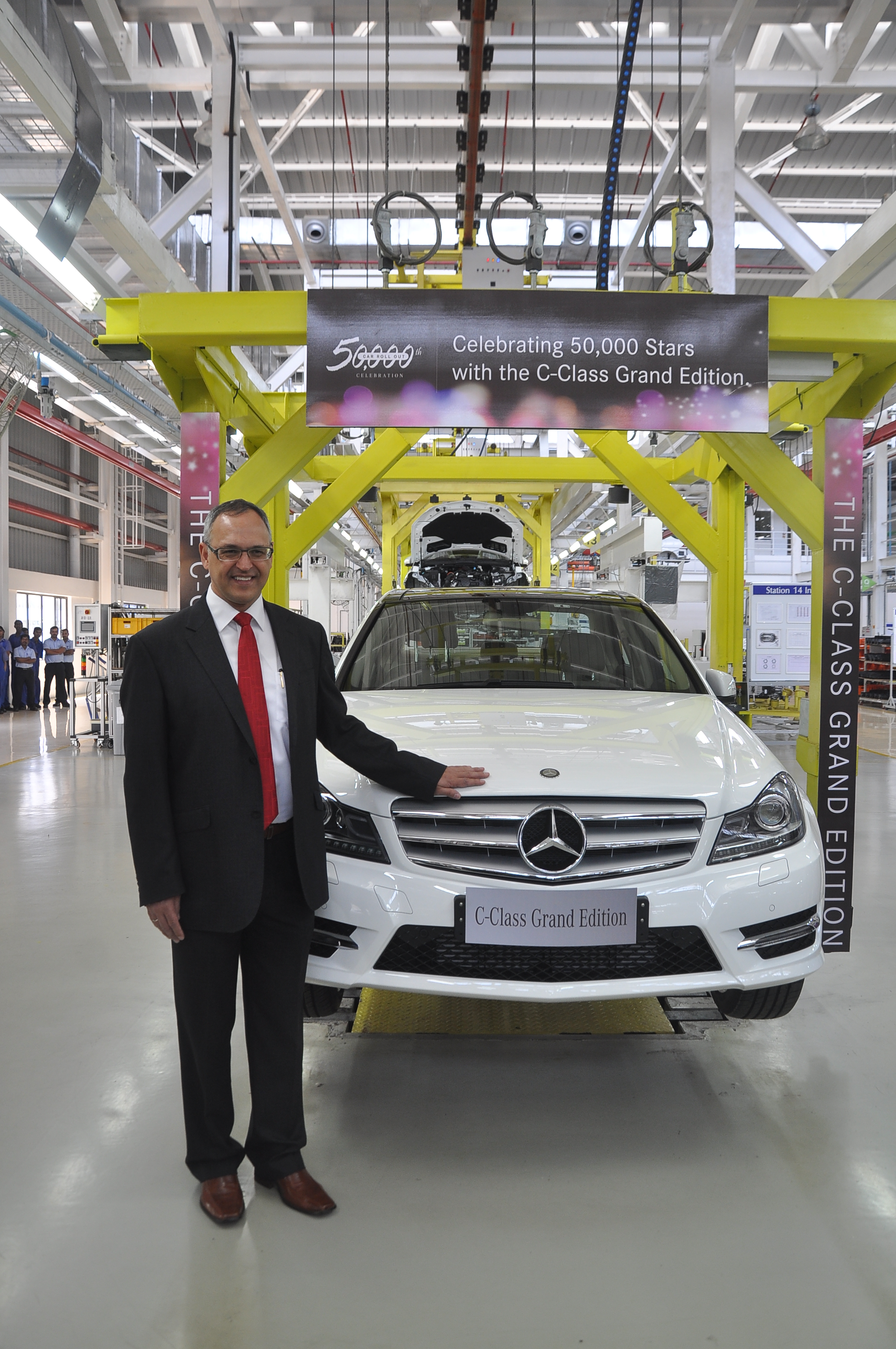 Eberhard Kern, Managing Director & CEO, Mercedes-Benz India said: “Touching the 50,000 cars landmark marks the beginning of a next growth chapter for Mercedes-Benz in India. With our customer centric focus specifically in line of products, network, aftersales and unique brand experiences have played a significant role in our success. The outstanding acceptance of all our products is a testimony to the success of that approach. I would like to thank our customers and congratulate the passionate team at Mercedes-Benz India on this achievement. We are committed to the India story and the market potential and will continue to increase our investments in our facility and infrastructure. The current capacity will be doubled by end of Q1 2014 and we will soon commence local assembly of newer models, making the company ‘future ready’. The C-Class GRAND EDITION embodies Mercedes-Benz’s uncompromising style, design and performance. The C-Class remains one of Mercedes-Benz’ best-sellers in the competitive entry level luxury sedan segment with in more than 19,000 units sold till date. To celebrate the 50,000th Mercedes-Benz roll out from our benchmarking plant, we are delighted to present the ‘The new C-Class GRAND EDITION’ in both petrol and diesel versions for our discerning patrons.”