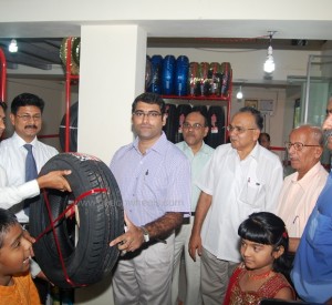 The Showroom houses tyres ranging from 2 wheelers to the the heavy earth movers. The centre offers full-fledged tyre services such as computerized wheel alignment, wheel balancing and automatic tyre fitment using the latest imported machinery from Italy-the hub of international garage industry. The unique feature of this particular centre is that the technicians have been trained specially in alignment and balancing at the company’s state of the art-MRF Tyredom in Chennai. The showroom also offers facilities like nitrogen filling, tubeless tyre repair for the cars and repairing of tubeless through the mushroom patch method.