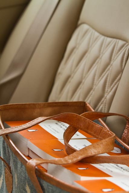 6468-Penguin classics ensconced in the backseat of Penguin-Ambassador