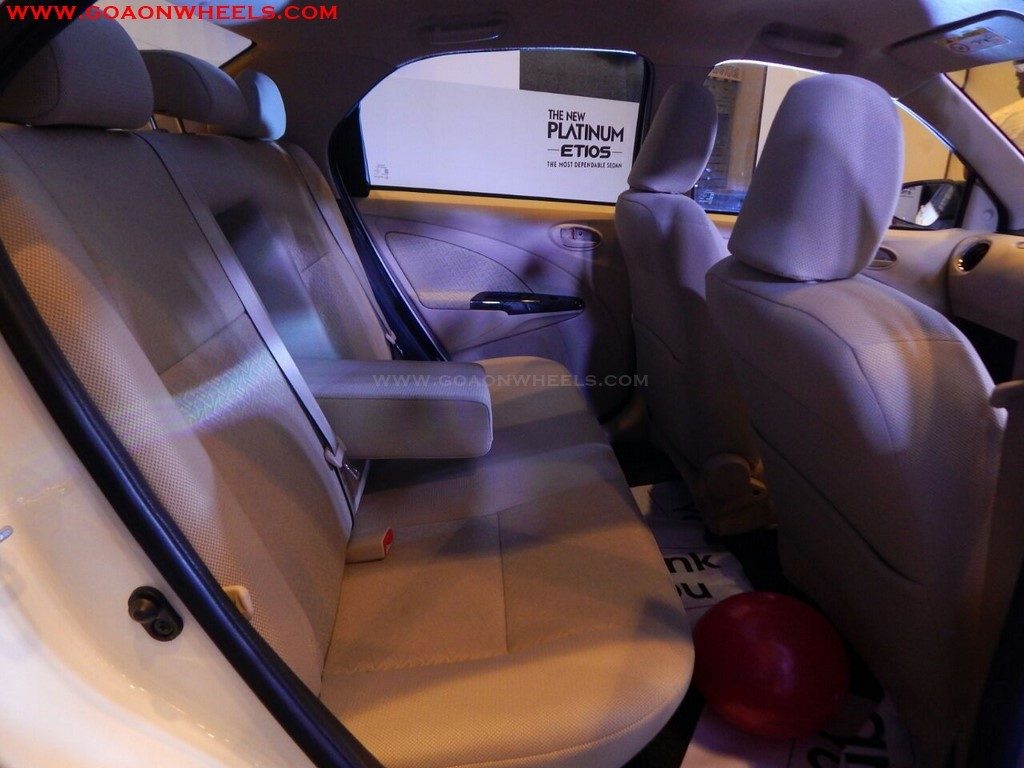The centrally located instrument cluster gets a new Optitron Combimeter with illumination control function offers an upmarket feel and it also houses a digital tachometer. The new Etios Platinum now is also offered with electrical adjust and retractable function for the outside rear view mirrors and a new rear armrest for added comfort.