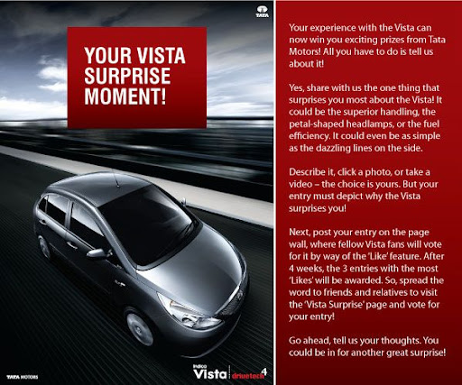 The new Tata Indica Vista comes with complete new features as compare to the old model. All you have to do is find that single similarity between the old model and the new one and get a chance to win a brand new Indica Vista or other exciting prizes.