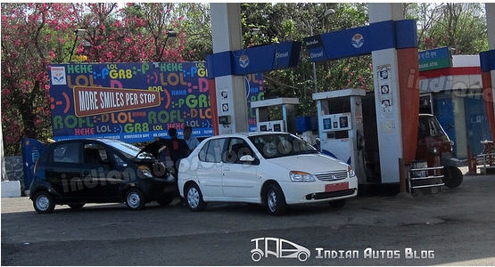 Thanks to Rohan and IAB who have caught the Nano at a fuel station being tanked up with Diesel. Tata had announced earlier that the Nano will be launched with a diesel heart. The engine is being developed with the help of component maker Bosch and will be launched by end of this year.