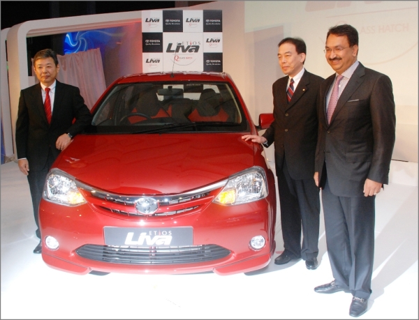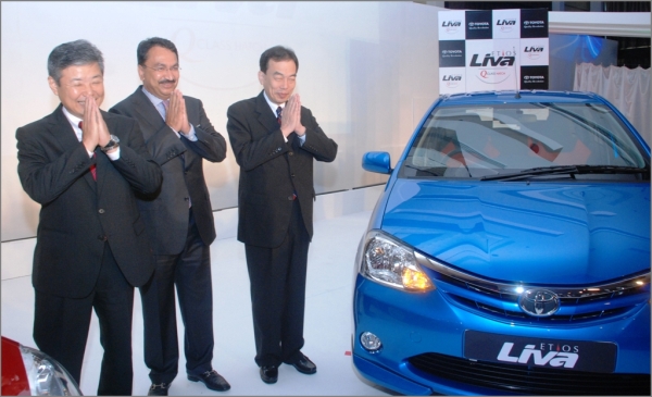 Etios Liva was launched by Mr. Hiroji Onishi, (President, Toyota Motor Asia Pacific, Marketing and Sales) in the presence of Mr. Vikram Kirloskar (Vice Chairman, TKM), Mr. Hiroshi Nakagawa (Managing Director, TKM), Mr. Sandeep Singh (Deputy Managing Director-Marketing, TKM) and Mr. Yoshinori Noritake, (Chief Engineer of the Etios and Etios Liva, Toyota Motor Corporation).