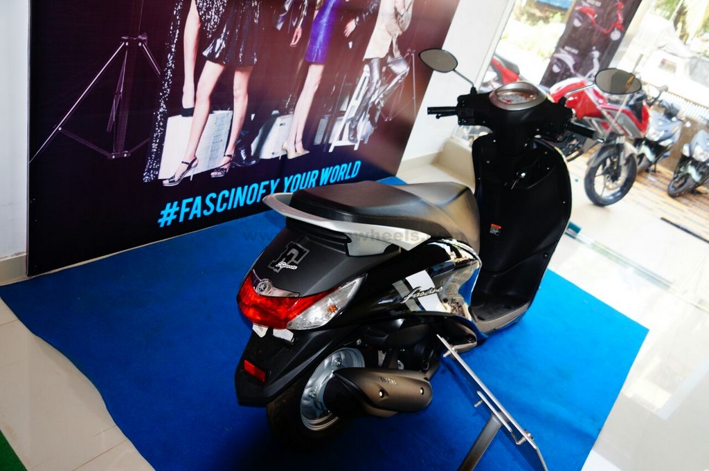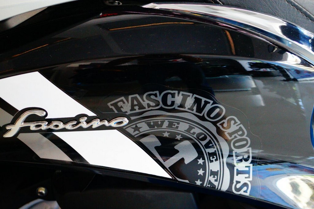 Based on the Tuxedo Black paint shade, the Fascino Sports edition gets white Sport graphics on the front which include white racing flags on the front fender, sport graphics and Fascino Sport badging on the side body, while and a large F Sports graphics above the taillamp, while the rest of the scooter is the same